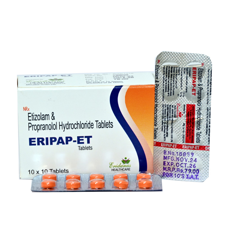 Eridanus Healthcare offers the best quality Etizolam and Propranolol Hydrochloride Tablets in India under the trusted brand name ERIPAP-ET. These tablets are specially formulated to provide effective relief from anxiety, stress, and related conditions. Manufactured in WHO-GMP-certified facilities, ERIPAP-ET ensures high purity, safety, and consistent results. The combination of Etizolam and Propranolol helps calm the mind, control heart rate, and reduce nervous symptoms, making it ideal for patients with anxiety and tension disorders. Eridanus Healthcare is known for its quality formulations, timely supply, and wide franchise support across India. Disclaimer - The information provided above is for educational and promotional purposes only and should not replace professional medical advice. The medicine should be used only under the guidance of a qualified healthcare professional.