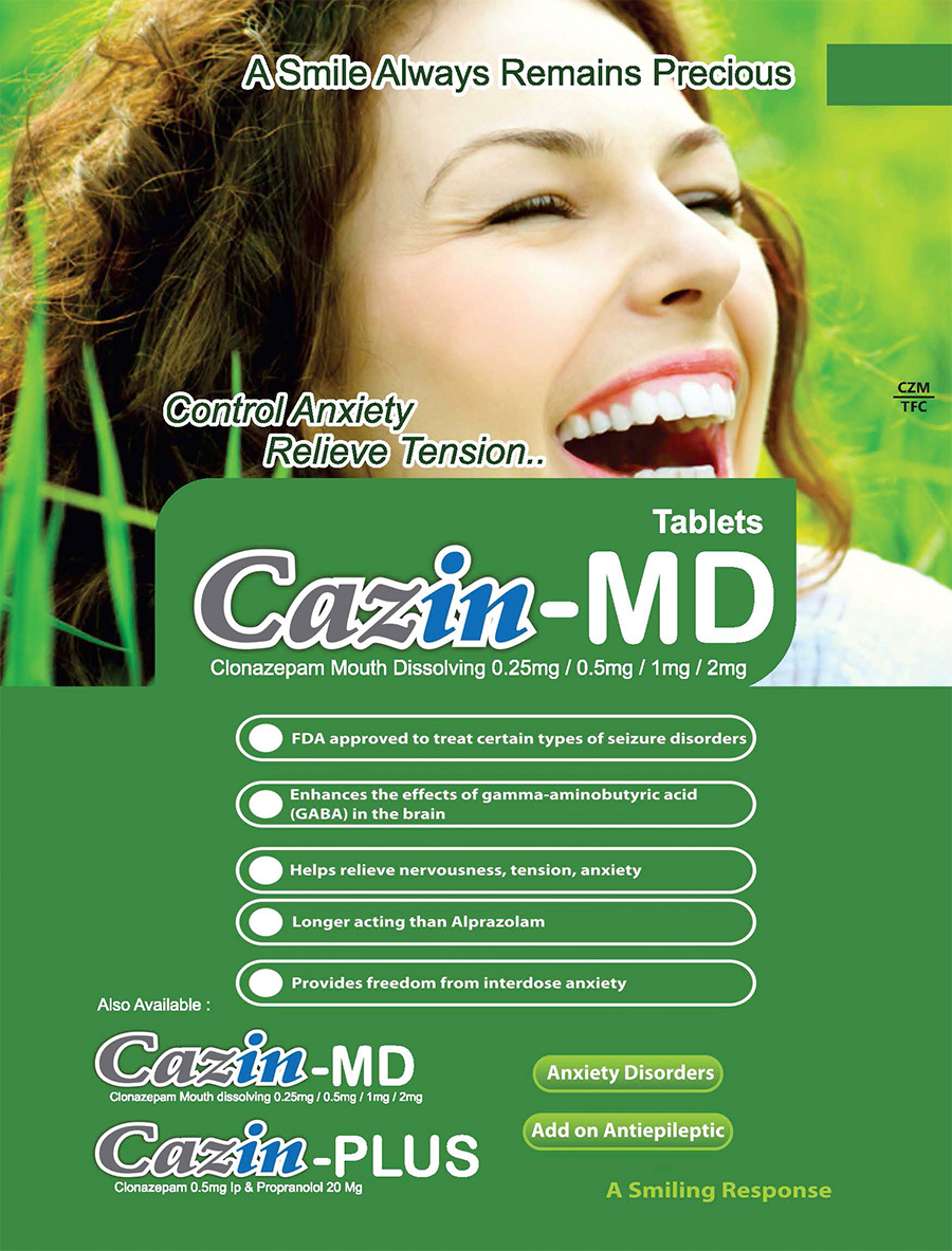 Clonazepam and Propranolol Hydrochloride Tablets – A combination of anxiolytics, these tablets are composed of Clonazepam and Propranolol that together help in the treatment of anxiety disorder. Aside from that, this medicine is also used to treat migraine, panic disorders, mental health disorders, fast heartbeat, seizure disorders, etc. Offered in the market with the brand name Cazin-Plus, these tablets are manufactured by the Best Clonazepam and Propranolol Hydrochloride Tablet Manufacturer, Eridanus Healthcare.
